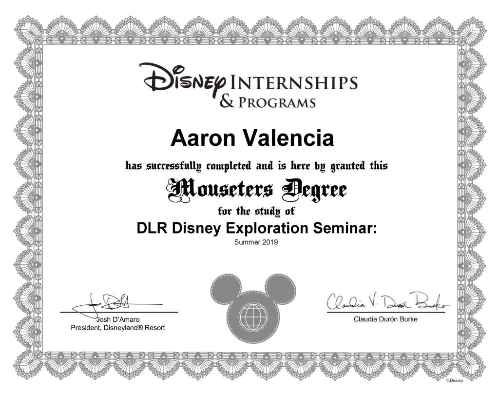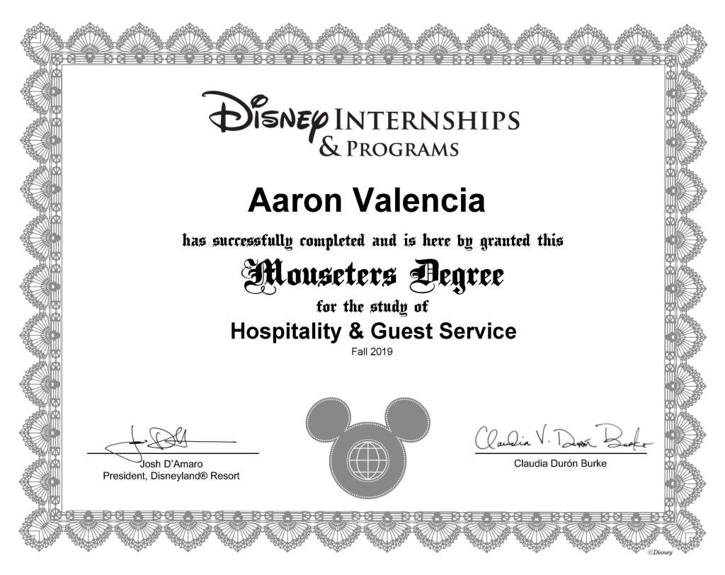 References Majid Alaeddin Sales and Service Leader majid.f.alaeddin@disney.com (949) 245-5617 Bryant Leon-Guerrero Training Delivery Leader bryant.j.leonguerrero@disney.com (657) 234-9063 Julia Chiang Talent Acquisition Coordinator julia.l.chiang@disney.com (657) 234-9063 Certificates